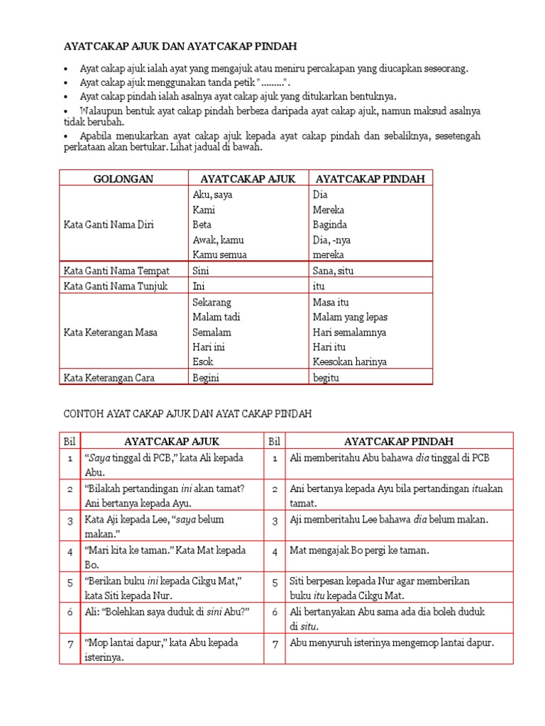 Ayat Cakap Ajuk Dan Ayat Cakap Pindah Pdf